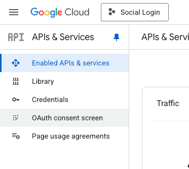 3. In the project’s left navigation panel, click OAuth consent screen.